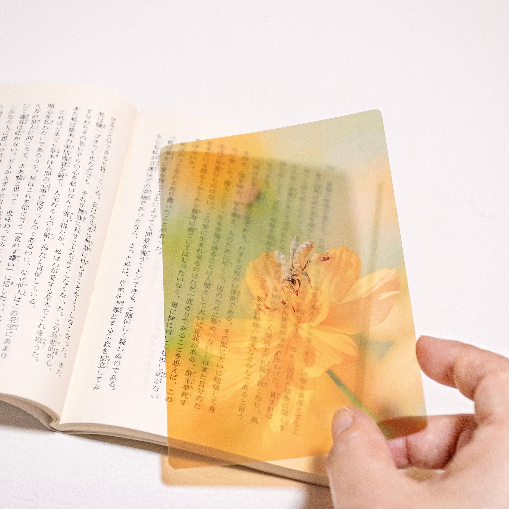 【本の中で小さな生命を感じる、透明写真栞】
